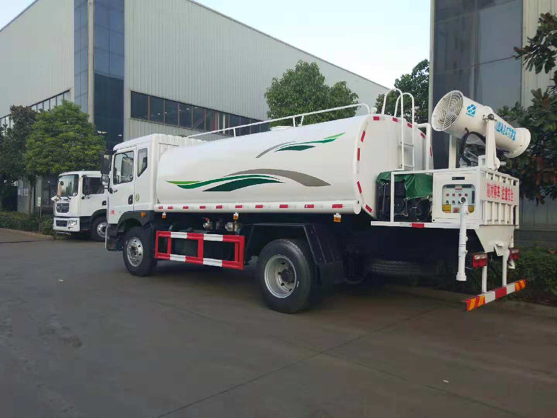 東風灑水車底盤,選裝駕駛室;側噴為選裝件;品名:水;密度:1000千克/立方米;有效容積:9.34立方米;軸距3950mm時,罐體外形尺寸(長×長軸×短軸)(mm):4600×2180×1390,外形尺寸長(mm)/前懸(mm)對應關系:7700/1250,7900/1450;軸距4500mm時,罐體外形尺寸(長×長軸×短軸)(mm):5200×2080×1290;外形尺寸長(mm)/前懸(mm)對應關系8250/1250,8450/1450;ABS型號為3631010-C2000,生產廠家為東科克諾爾商用車制動系統(十堰)有限公司;側面防護裝置材料材質:Q235,連接方式:焊接;后下部防護裝置材料材質:Q235,連接方式:焊接,斷面尺寸(寬×高):30×120(mm),離地高度:500mm.吸程≧7米,灑水寬度≧14-16米,灑水車射程≧25-30米,引水時間<5min,流量60m3/h。前沖(噴)、后灑、帶側噴(花灑)、帶后工作平臺、平臺上安裝綠化灑水高炮(炮噴射形狀可調節:直沖、大雨、中雨、毛毛雨、霧狀、可連續調節,360°旋轉),配消防接口,自流閥,濾網,帶自吸自排功能。配備大功率專用灑水泵,泵可自吸自排,安裝過濾網,帶消防接口,可通過消防栓進水,帶自流閥,隨車選裝20米綠化卷盤,可噴灑農藥,罐體金屬漆。灑水車罐體有橢圓和方圓罐兩種,可根據用戶的要求定做