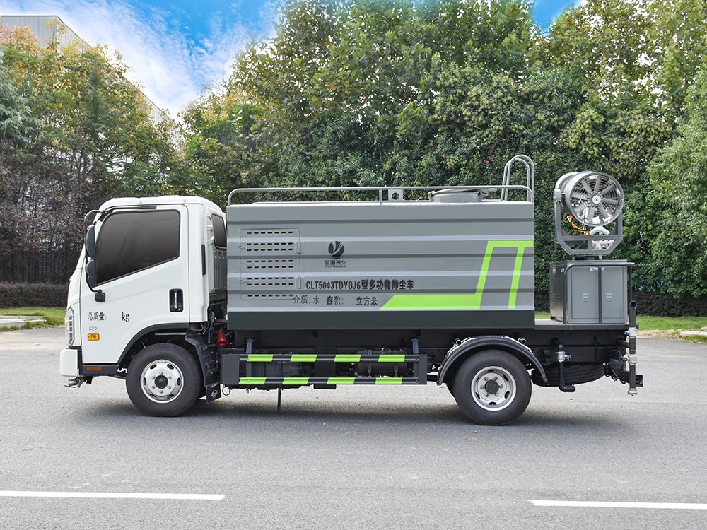 福田藍牌7方抑塵車產品產品主要技術參數 序號 名稱 型號、規格 1 整車型號 CLT5043TDYBJ6 型多功能抑塵車 2 發動機型號 Q28-130C60 3 發動機馬力/功率 全柴 130 馬力/96KW 4 發動機排量 2800ML 5 變速箱 法士特 5 檔 6 輪胎規格 7.00 鋼絲胎 7 軸距 3360 8 總質量 4495KG 9 整備質量 3800KG 10 額定載質量 500KG 11 整車尺寸(長×寬×高) 5.998*1.99*2.8 12 罐體容積 7 方 13 燃料種類 柴油 14 排放標準 國六 15 水泵型號 40/50 16 罐體材質 Q235 碳鋼