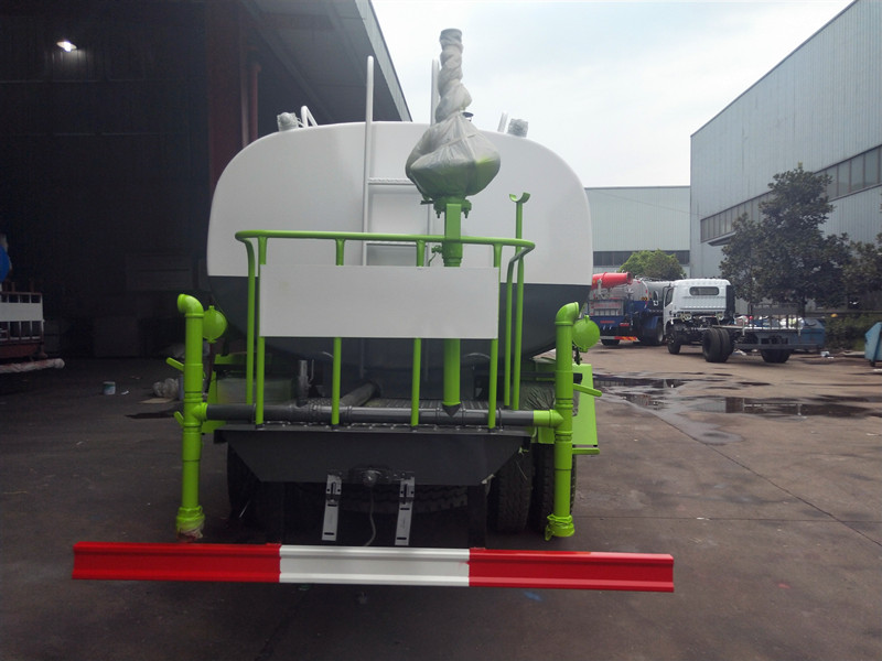 1、罐體有效容積:6.82立方米,罐體外形尺寸(長×長軸×短軸)為(mm):4200×1900×125吸程≧7米, 灑水寬度≧14-16米,射程≧25-30米,引水時間<5min,流量60m3/h。前沖(噴)、后灑、 帶側噴(花灑)、帶后工作平臺、平臺上安裝綠化灑水高炮(炮噴射形狀可調節:直沖、大雨、中雨、 毛毛雨、霧狀、可連續調節,360°旋轉),配消防接口,自流閥,濾網,帶自吸自排功能。 配備大功率專用灑水泵,泵可自吸自排,安裝過濾網,帶消防接口,可通過消防栓進水, 帶自流閥,隨車選裝20米綠化卷盤,可噴灑農藥,罐體金屬漆。罐體有橢圓和方圓罐兩種, 可根據用戶的要求定做 |
