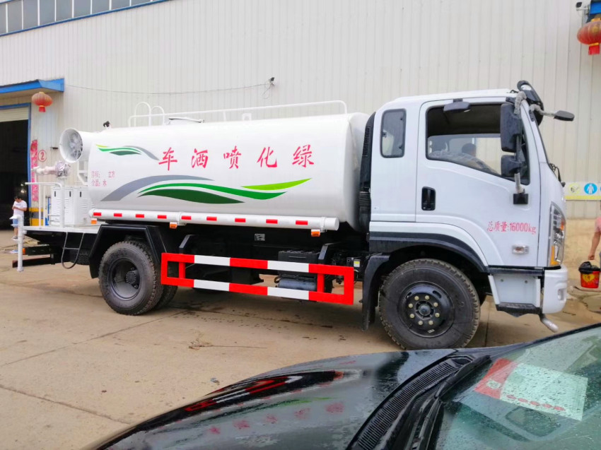吸程≧7米,灑水寬度≧14-16米,射程≧25-30米,引水時(shí)間<5min,流量60m3/h。前沖(噴)、后灑、帶側(cè)噴(花灑)、帶后工作平臺(tái)、平臺(tái)上安裝綠化灑水高炮(炮噴射形狀可調(diào)節(jié):直沖、大雨、中雨、毛毛雨、霧狀、可連續(xù)調(diào)節(jié),360°旋轉(zhuǎn)),配消防接口,自流閥,濾網(wǎng),帶自吸自排功能。配備大功率專(zhuān)用灑水泵,泵可自吸自排,安裝過(guò)濾網(wǎng),帶消防接口,可通過(guò)消防栓進(jìn)水,帶自流閥,隨車(chē)選裝20米綠化卷盤(pán),可噴灑農(nóng)藥,罐體金屬漆。罐體有橢圓和方圓罐兩種,可根據(jù)用戶(hù)的要求定做,前橋5噸,后橋10噸,康明斯190匹馬力國(guó)五發(fā)動(dòng)機(jī),法士特8檔變速箱,ABS,空調(diào)