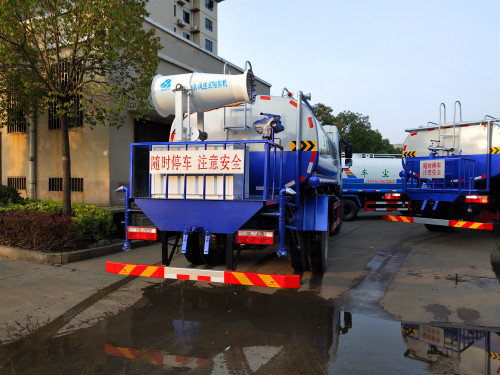 東風D9抑塵車,采用二類專用底盤改裝,具有操作安全可靠,水霧射程遠,用水量小等特點,該車型噴霧系統適用于城市街道霧霾治理、露天儲煤、焦、沙、石等工礦企業堆場噴霧抑塵,建筑工地、房屋拆遷改造現場、場地平整現場等噴霧降塵,公共場所、綠化園林噴藥殺菌消毒;前沖洗、后灑水以及后作業水炮適用于城市道路環保降塵、道路清洗、廣告牌清洗環保作業。左右綠化澆灌裝置可用于公路綠化帶的澆灌作業