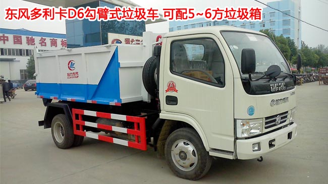 東風多利卡拉臂式垃圾車又稱車廂可卸式垃圾車或勾臂垃圾車,底盤采用國五東風多利卡底盤,拉臂上裝選用本公司自主設計,自主知識產權的直臂,知名品牌液壓雙缸(缸徑125);