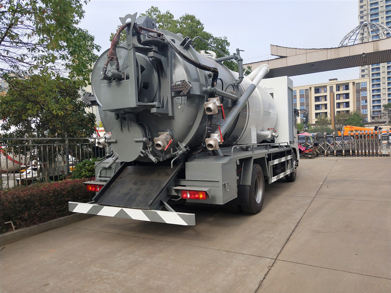 清洗罐6立方,污水罐8立方,配80米直徑19清洗管,配10個(gè)不同規(guī)格的高壓噴頭,尾部左側(cè)后置式清洗卷盤,吸污部分安排偉業(yè)牌大功率10T真空吸污泵,帶10米吸污管一根,罐體右后側(cè)安裝150排污閥,側(cè)抽上料口采用直徑115加厚型無(wú)縫管,(清水罐和污罐)頂部安裝三爪干灰蓋,加大工具箱,水污互通。