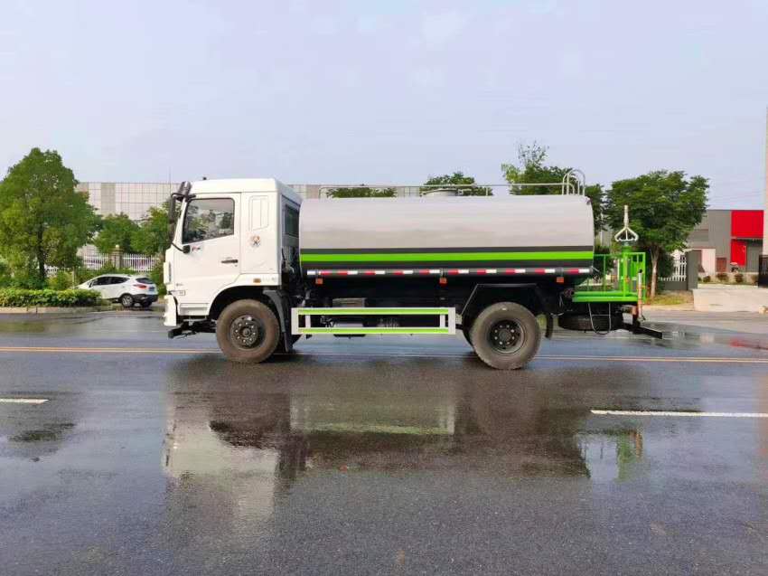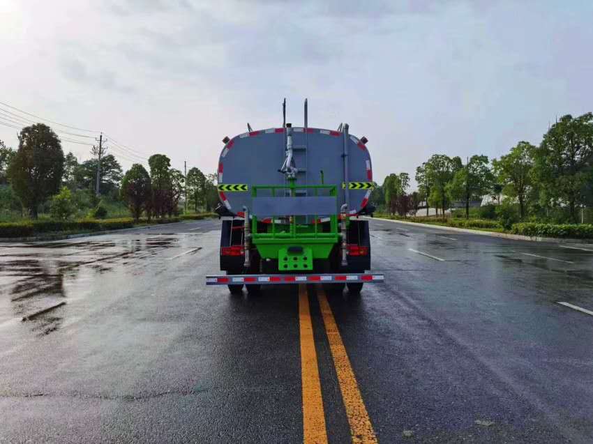 國六東風大多利卡12方灑水車整車說明:國六玉柴200馬力/康明斯210馬力發動機,法士特C6J75T6擋變速箱,295/80R22.5真空胎,前橋3.9噸,后橋8噸,250雙層大梁,方向助力,斷氣剎,離合助力,ABS,電動窗,氣囊坐椅,空調,罐體采用4mm厚武鋼專用板材制作,實際容積14立方,該灑水車標配前沖(噴)后灑,灑水寬度≥14米,帶側噴,罐體后帶工作平臺,平臺上安裝綠化灑水炮,灑水炮可全方位旋轉,射程≥28米,可連續調成直沖狀、大雨、小雨、毛毛雨,帶安全護欄,配備專用灑水泵,泵可自吸自排,安裝過濾網,帶消防接口,可通過消防栓進水,帶自流閥,具有自吸自排功能,垂直吸≥7米;