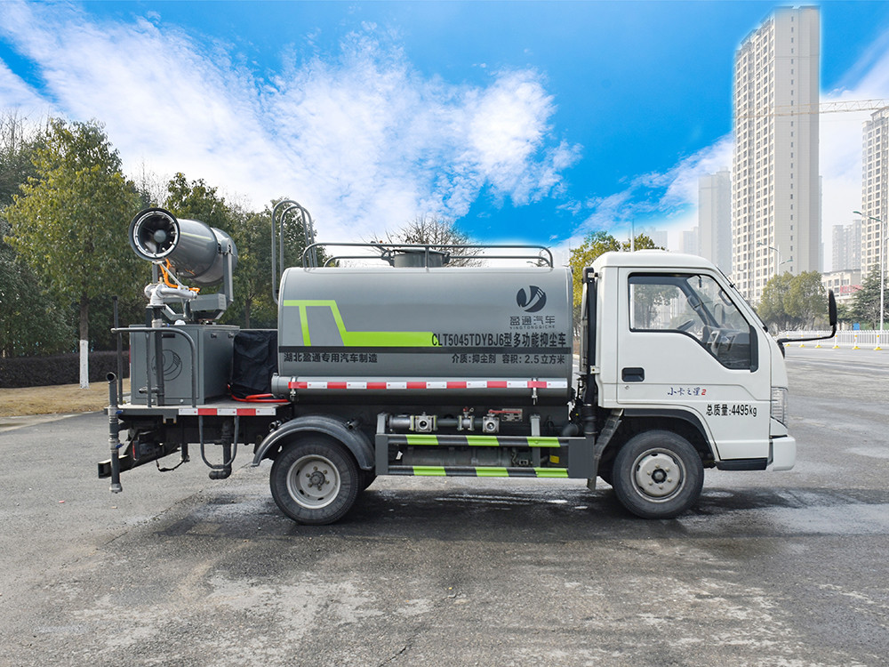 3方霧炮灑水車 整車型號 CLT5045TDYBJ6 型多功能抑塵車 2 發(fā)動機型號 Q23-95C60 3 發(fā)動機馬力/功率 全柴 95 馬力/70KW 4 發(fā)動機排量 2300ML 5 變速箱 蒙沃 5 檔箱 6 輪胎規(guī)格 6.00 鋼絲胎 7 軸距 2600 8 總質(zhì)量 4495KG 9 整備質(zhì)量 2700KG 10 額定載質(zhì)量 1665KG 11 整車尺寸(長×寬×高) 5.365*1.9*2.6 12 罐體容積 2.7 方 13 燃料種類 柴油 14 排放標準 國六 15 水泵型號 40/50 16 罐體材質(zhì) Q235 碳鋼產(chǎn)品功能展示 霧炮 后灑 后對沖 高炮 側(cè)噴