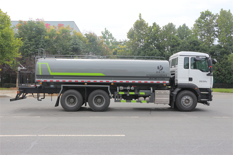 該車主要用于城鄉(xiāng)園林綠化,路面噴灑,除塵和降溫;主要裝置為水罐及噴灑裝置;隨底盤選裝駕駛室,罐體總?cè)萘?14.7立方米,罐體有效容積:14立方米;罐體外形尺寸(長×長軸×短軸)(mm):6500×2360×1400;采用軸距(mm):4600+1350,4300+1350;側(cè)后防護(hù)情況:側(cè)、后防護(hù)材料均為:Q235碳鋼,連接方式均為:螺栓連接,后部防護(hù)截面尺寸(mm):120×50,后部防護(hù)離地高度(mm):480;ABS系統(tǒng)控制器生產(chǎn)企業(yè)/型號為威伯科(上海)管理有限公司/4460046300;選裝EBS,EBS系統(tǒng)控制器生產(chǎn)企業(yè)/型號為威伯科(上海)管理有限公司/EBS3。選裝弧形噴灑裝置,選裝噴灑裝置樣式,選裝水炮支架位置,選裝擋泥板樣式,選裝自動球閥安裝位置。