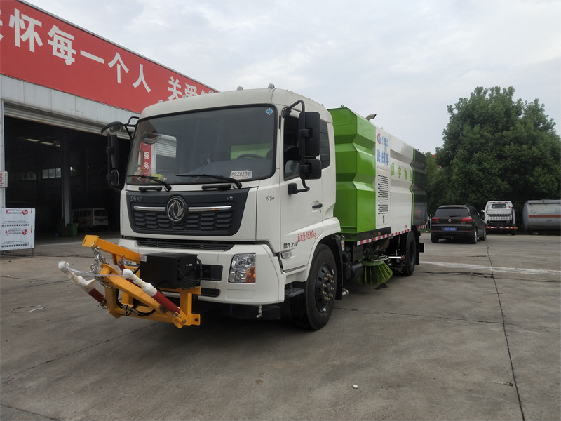 洗掃車采用中置兩刷盤,中置寬吸盤,配上具有防撞避障功能的V型高壓沖水架,組成一條大于3.5米的沖洗清掃帶。采用康明斯EQ6BT5.9-118型副發動機現階段亦有采用電動作為動力的驅動裝置橫置在車架中部,具有氣動離合裝置控制的抽吸風機布置在動力倉的左側。采用不銹鋼材料加工而成的水箱與垃圾箱均為采用方形瓦棱結構。水箱分為兩部位,一部分為前置獨立水箱,裝配在動力倉的前部;另一部分為設置在垃圾箱前部的水箱,可隨垃圾箱與動力倉罩同時升降。具有舉升功能的垃圾箱內裝配有高壓沖洗噴頭,使得卸料更為輕松、干凈徹底。能夠隨垃圾箱體舉升的動力倉罩可使動力系統的維修保養極為便利。采用歐美地區的名優配套部件,使得整車性能更為優良,工作更為可靠。
