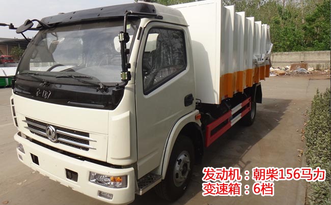 東風(fēng)多利卡D7對(duì)接式垃圾車(chē),D7單排駕駛室,朝柴156馬力發(fā)動(dòng)機(jī),6檔變速箱,.2噸后橋,7.50R16鋼絲胎,氣剎,帶ABS,方向助力。