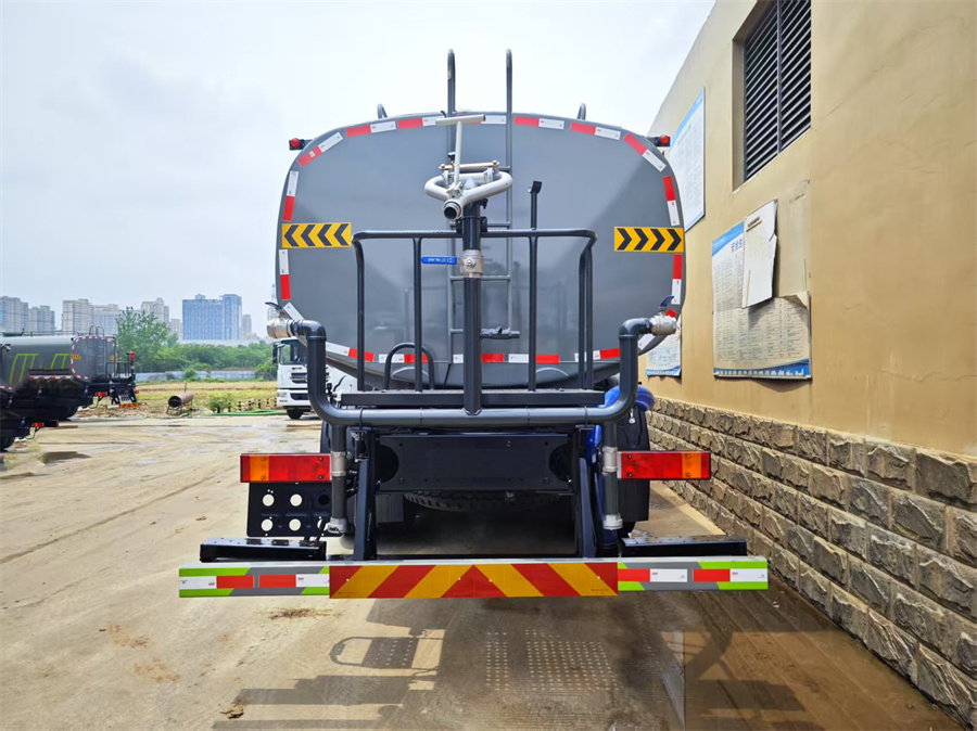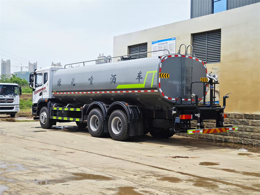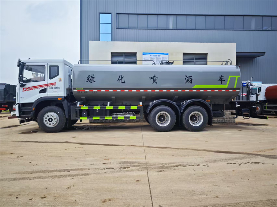 灑水車產品標配前噴 (鴨嘴) 、后沖、后灑、側噴、后置式工作 平臺,平臺上配置綠化水炮 (可 360 °旋轉,既可以調成柱狀,也可 以調成霧狀,更可以調成直沖狀、大雨、中雨、小雨、毛毛雨) ,配 備優質大功率專用灑水泵(可自吸自排,可從河里或池塘抽水到罐體), 取力器,雜物過濾網,消防接口, 自流球閥系統、取力器、球閥、濾網 均為國家標準產品,主管道加粗,法蘭墊、法蘭盤加厚,大通徑球閥。 整體具備性能優良安全可靠、效率高、流量大、維修方便等特點。