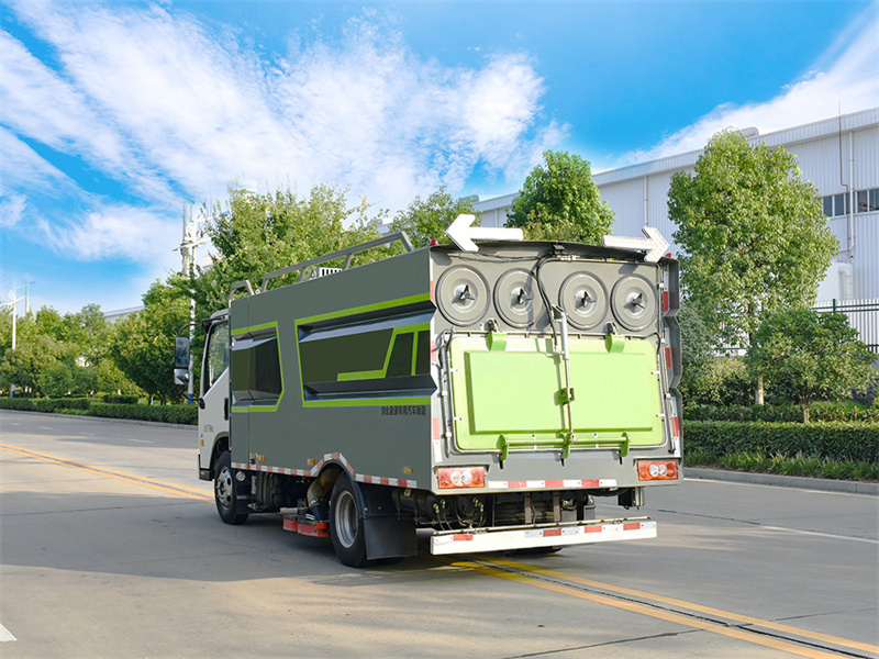 9.集塵箱自主研發三級降塵技術,采用重力除塵,慣性除塵,濾網除 塵,并結合脈沖除塵技術,既能將灰塵吸凈,又能防止濾網堵塞。10. 車輛后部集塵箱安裝手動吸口,可連接吸塵管直接手動操作。