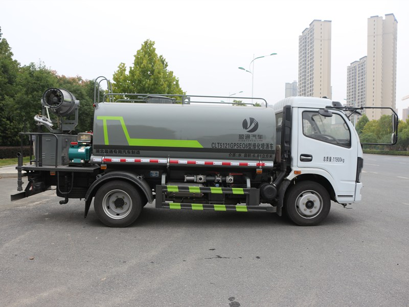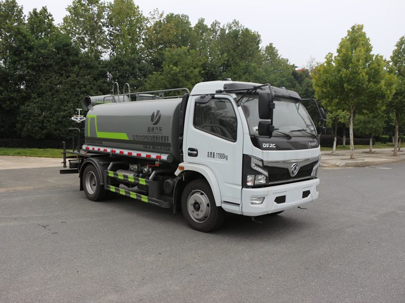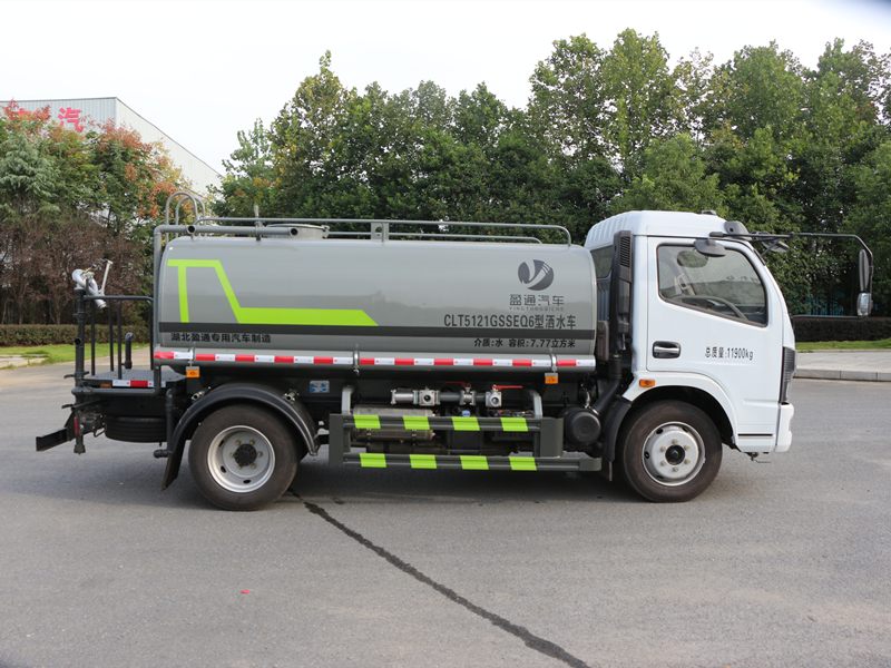 灑水車專用功能配置罐體實際容積約為8立方米,(罐體有效參數(shù)6.81立方米、額定載質量6805kg、)采用武鋼優(yōu)質碳鋼板卷壓成型。配備專用灑水泵,自吸自排,前噴后灑、側噴、后工作平臺及灑水高壓炮。灑水泵自吸高度為6米左右,整車灑水寬度14米左右,后工作平臺水炮可調成:直沖狀、大雨、中雨、小雨、毛毛雨,有效射程≥28米,整車帶接頭、水位計,自流閥。后工作平臺主管路帶1寸澆花接口,附送2根3米水管,1個爬梯,兩側及后保險杠。