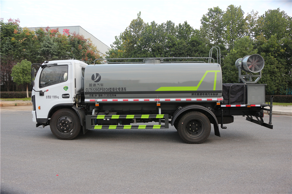 整車說明:選裝噴霧裝置;ABS型號:ABS/ASR-24V-4S/4M;ABS生產企業:襄陽東風隆誠機械有限責任公司;選裝描述:隨底盤選裝駕駛室;側后防護情況:側、后防護材料均為:Q235碳鋼,連接方式均為:螺栓連接,后部防護截面尺寸(mm):120×50,后部防護離地高度(mm):460;罐體有效容積(立方米)、罐體外形尺寸(mm):罐體有效容積:7.22立方米;罐體外形尺寸(長×長軸×短軸)(mm):4000×2000×1320;專用功能及裝置:該車主要用于城鄉園林綠化噴灑,噴藥;主要裝置為水罐及噴灑裝置;選裝附件布局;選裝側面及后部結構樣式。選裝后部結構樣式時,后防護為專用裝置代替,離地高度(mm):460。