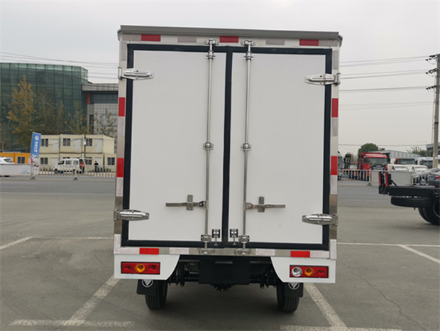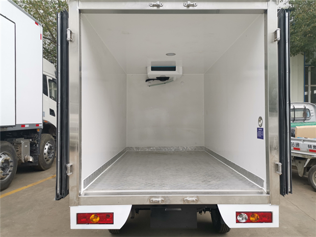 福田2米8冷藏車車廂配置:廂體采用內(nèi)外優(yōu)質(zhì)玻璃鋼板夾保溫層制成,廂體厚度80mm,鋁合金型材包邊,鎖件為不銹鋼,地板為鋁花紋板,不銹鋼門框,鎖件,新型鋁合金型材包邊,不銹鋼包角。