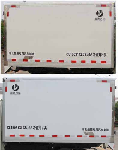 該車用于冷藏運輸的廂式汽車,裝備有隔熱結構的車廂和制冷裝置;貨廂頂部封閉,不可開啟.ABS系統控制方式是雙參數控制,ABS系統控制器型號是YF9,ABS系統控制器生產企業是武漢元豐汽車電控系統有限公司.發動機DAM15KR,DAM16KR分別對應的最大凈功率為80kW,85kW,分別對應最高車速100km/h,110km/h.發動機與油耗申報值(L/100km)對應關系為:DAM15KR/8.1,DAM16KR/7.5;選裝直接供電式ETC車載裝置.隨底盤選裝新前格柵和不帶導流罩.選裝側門樣式,選裝后部樣式;選裝同等功率制冷機組,外觀形狀可不同.該車型整備質量包含備胎、滅火器、隨車工具.貨廂重量為485kg,底板材質為玻璃鋼+擠塑聚苯乙烯,厚度為75mm或者79mm,側板材質為玻璃鋼+擠塑聚苯乙烯,厚度為75mm或者79mm.選裝廂體無側門樣式.