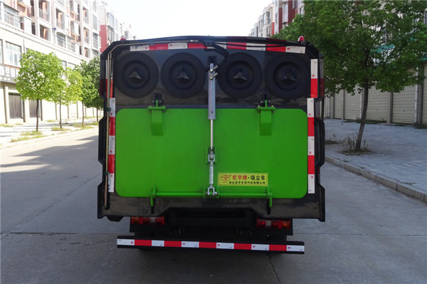 該吸塵車是采用江淮型國五二類原廠汽車底盤改裝,加裝副發動機、風機、清水箱、垃圾箱、中置吸盤,工作視頻探頭,自動脈沖清理功能,液壓系統、專用裝置電控系統和副車架等改裝而成。