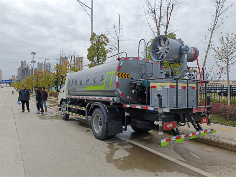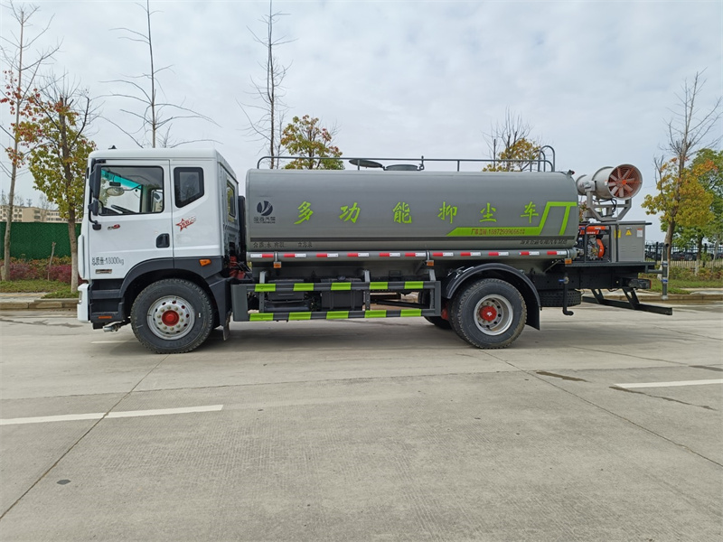東風(fēng)15-16噸霧炮灑水車產(chǎn)品標(biāo)配前噴(鴨嘴)、后沖、后灑、側(cè)噴、后置式工作 平臺(tái),平臺(tái)上配置綠化水炮(可 360°旋轉(zhuǎn),既可以調(diào)成柱狀,也可 以調(diào)成霧狀,更可以調(diào)成直沖狀、大雨、中雨、小雨、毛毛雨),配 備優(yōu)質(zhì)大功率專用灑水泵(可自吸自排,可從河里或池塘抽水到罐體), 取力器,雜物過濾網(wǎng),消防接口,自流球閥系統(tǒng)、取力器、球閥、濾網(wǎng) 均為國(guó)家標(biāo)準(zhǔn)產(chǎn)品,主管道加粗,法蘭墊、法蘭盤加厚,大通徑球閥。 整體具備性能優(yōu)良安全可靠、效率高、流量大、維修方便等特點(diǎn)