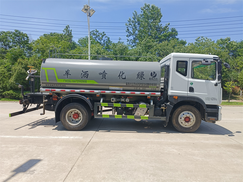 灑水車產品簡述:縱昂牌 CLT5167GPSEQ6 型綠化噴灑車標配前噴(鴨嘴)、后對沖、 后灑、側噴、后置式工作平臺,平臺上配置綠化水炮可 360°旋轉,既可以調 成柱狀,也可以調成霧狀,配備優質大功率專用灑水泵,可自吸自排,可從河 里或池塘抽水到罐體,取力器,雜物過濾網,消防接口,自流球閥系統、取力 器、球閥、濾網均為國家標準產品,主管道加粗,法蘭墊、法蘭盤加厚,大通徑 球閥。整體具備性能優良安全可靠、效率高、流量大、維修方便等特點
